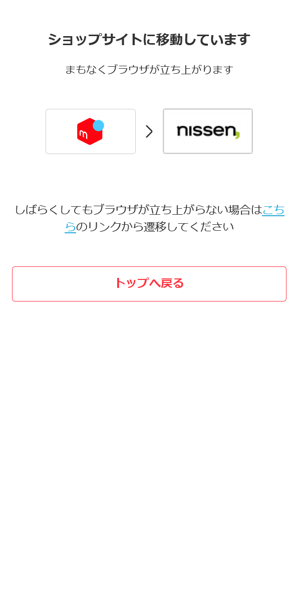 ショップのWebサイトへ移動中を表す画面が表示され、そのままお待ちいただくとブラウザが立ち上がりショップのページが表示されます。