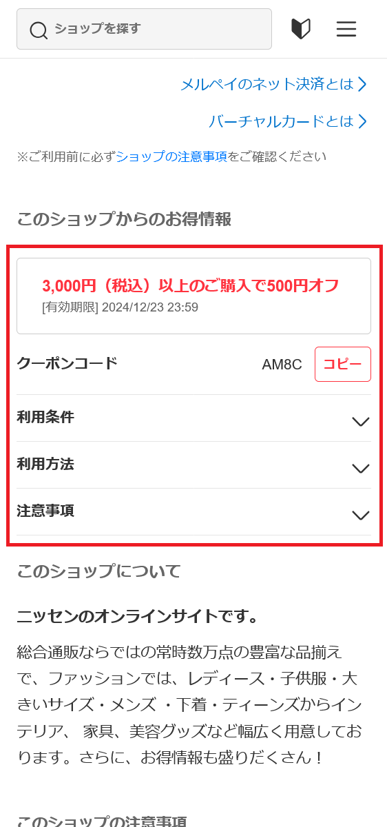 また、ご不明点等がある場合、恐れ入りますが、各ショップに直接お問い合わせください。 - ショップのクーポンを確認する