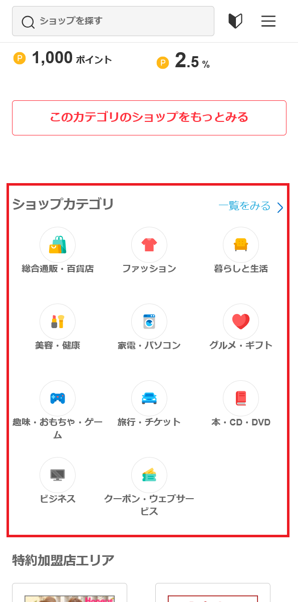 本サービスを経由してショップのWebページへアクセスしご利用いただくと、決済金額(消費税および送料、手数料等を除く)に各ショップ所定の還元率を掛け合わせて算出したポイントを還元します。