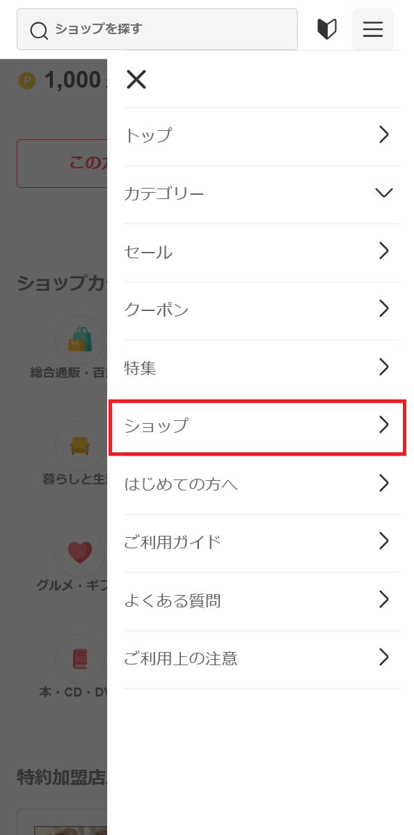 ・ショップが指定した対象外商品をご購入された場合(詳しくは各ショップの詳細ページをご確認ください)
