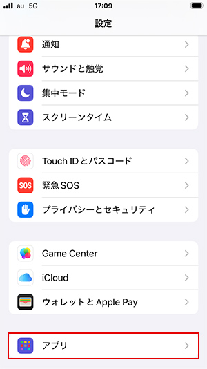2.「アプリ」をタップ