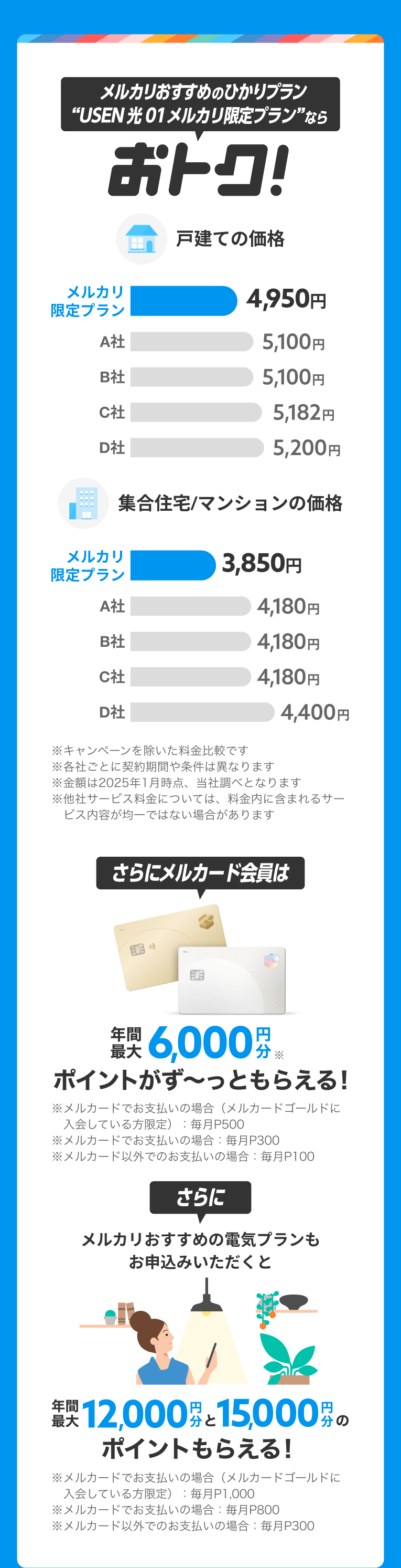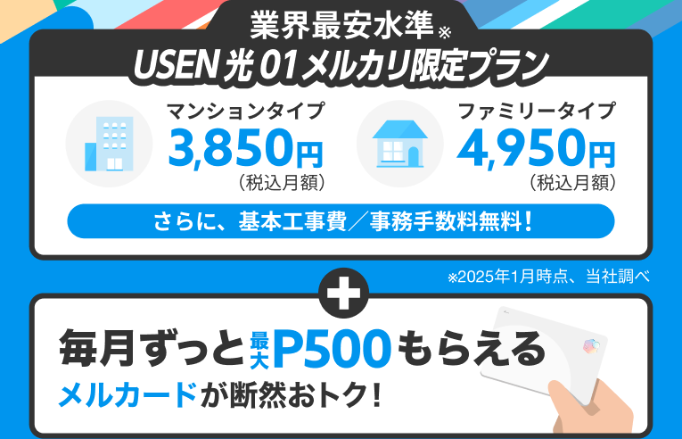 ・「USEN光01 メルカリ限定プラン」をご利用いただくこと