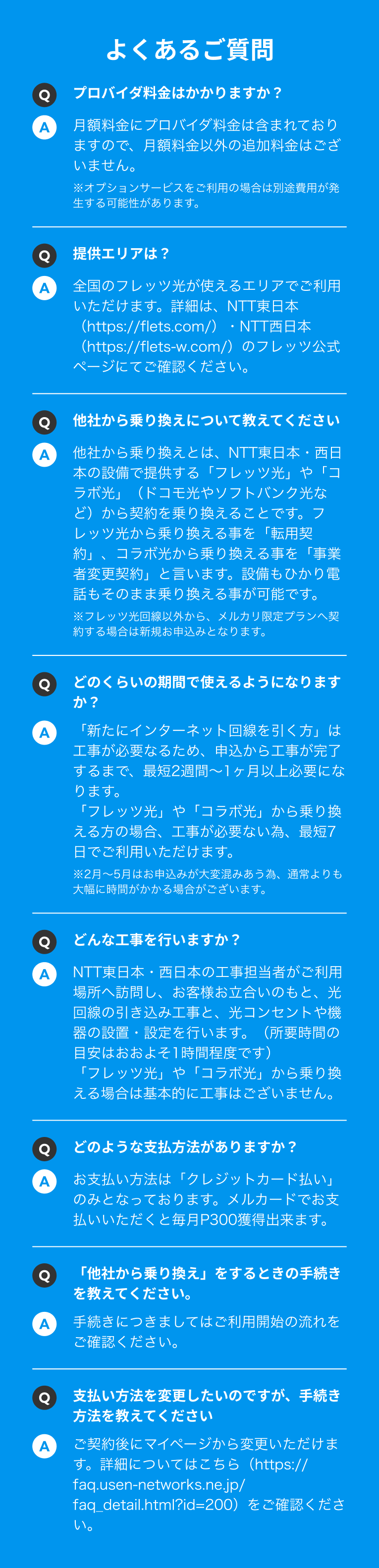 ・「USEN光01 メルカリ限定プラン」および「U-POWER」自体のサービス詳細に関する問い合わせ